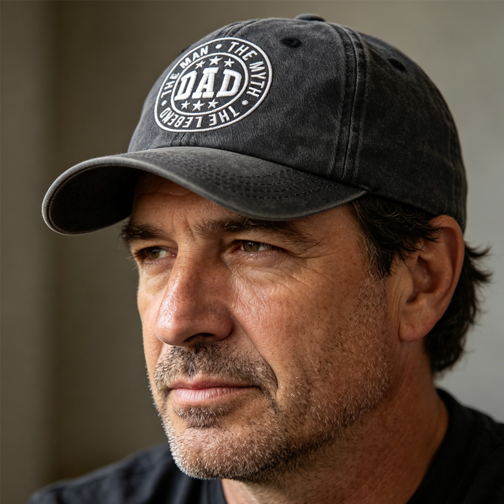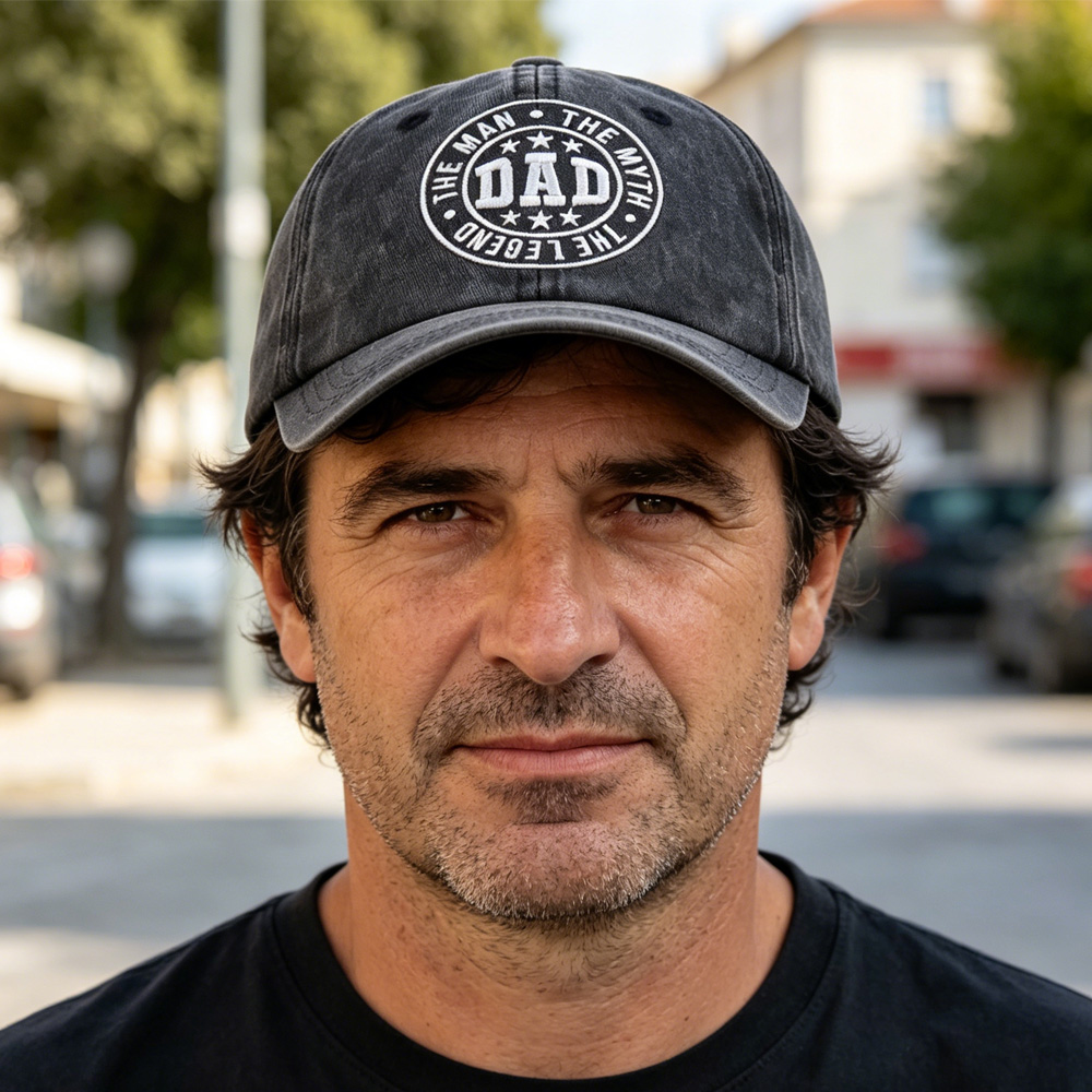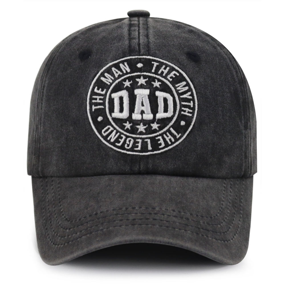 DAD The Man The Myth The Legend Vintage Washed Baseball Cap, Funny Hat for Men, Adjustable Cotton Trucker Cap • Premium Vintage StyleMade of soft, breathable cotton with a washed, worn-in look that gets better with every wear. A classic dad cap silhouette that never goes out of style. • Meaningful Embroidery DesignBold “DAD The Man The Myth The Legend” embroidery on the front, making it a fun, eye-catching statement piece for proud dads everywhere.