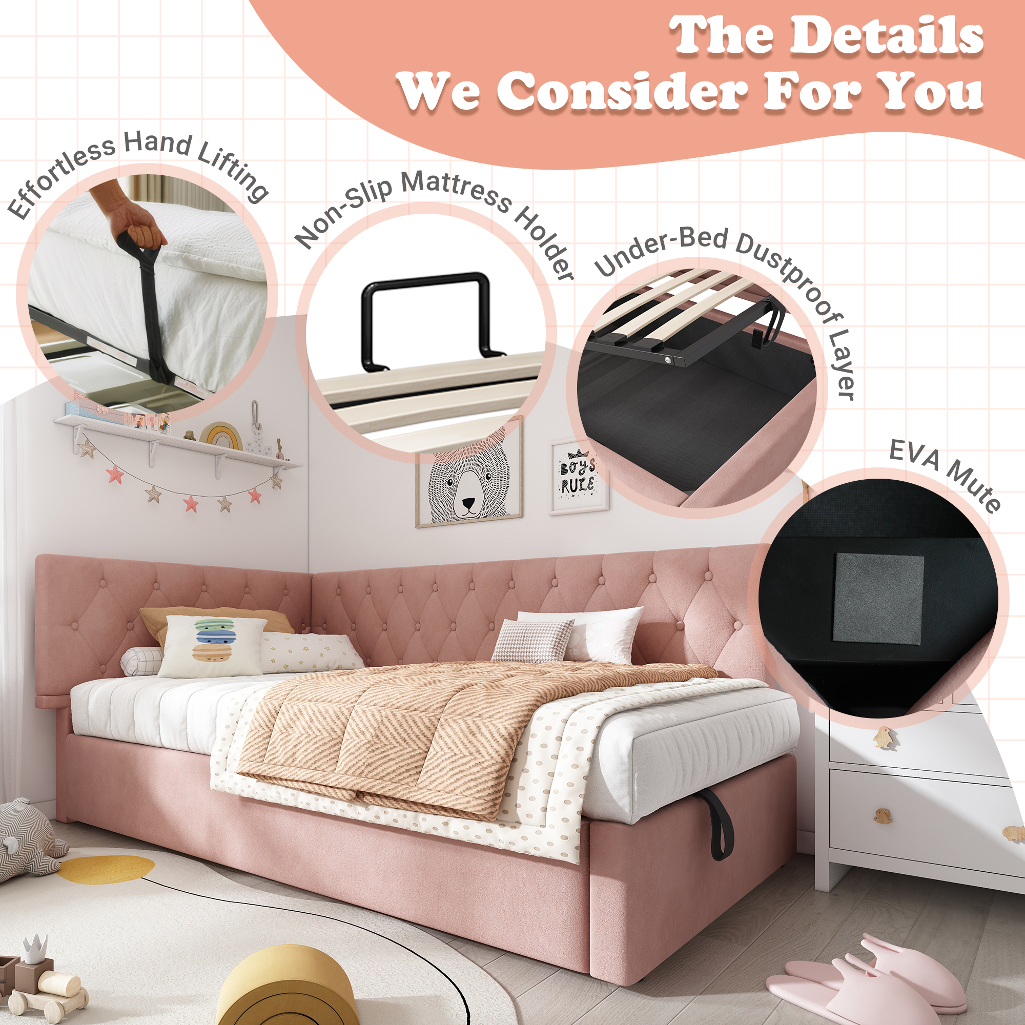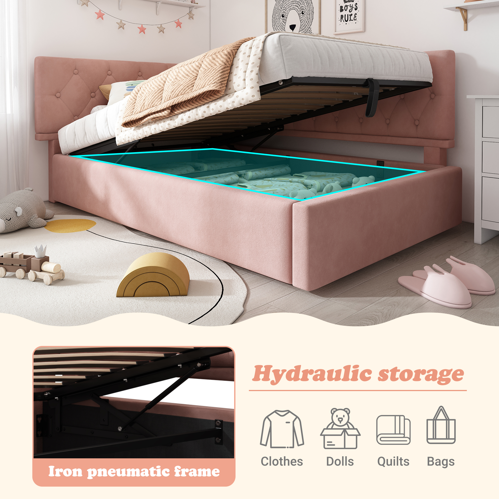 Daybed Upholstered Bed With Storage, 3FT Single Sofa Bed 90 X 190 Cm, Ottoman Bed With Hydraulic Storage, Metal Slatted Bed Frame, Velvet, No Mattress