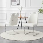 Be the first to review “Dining Chairs Set Of 2, White Faux Leather Kitchen Chairs With Gold Mesh Texture, Silver Back Ring And Chrome Pull Handle, High Back Upholstered Dining Room Chair White, Set Of 2”