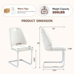 • Single Box ProductProduct Name:Dining Chairs Set of 2, White Faux Leather Kitchen Chairs with Gold Mesh Texture, Silver Back Ring and Chrome Pull Handle, High Back Upholstered Dining Room Chair ( White, Set of 2)Place of Origin:ChinaMain Color:WhiteMain Material:PUFiller:FoamProduct Style:ModernUse Case:Dining RoomChair Type:Dining ChairsPattern:SolidChair Back Style:Solid BackChair Upholstery Material:MetalChair Shape:RectangularChair Finish Type:PaintedChair Fill Material:FoamChair Care Instructions:Wipe CleanSeating Quantity:Set of 2Product DimensionsAssembled Length (in.):17.72Assembled Width (in.):35.83Assembled Height (in.):21.26Product Weight (lbs.):14.55Package SizeLength (in.):23.62Width (in.):16.93Height (in.):18.50Weight (lbs.):31.97Product Features【Premium PU Leather Material】Crafted from high-quality PU leather, the upholstery features a fine texture with clear natural grain. It feels soft yet firm to the touch, giving your dining area a refined and luxurious look.【Waterproof & Scratch Resistant】The PU leather surface is waterproof, stain-resistant, and pet-friendly, making daily maintenance easy. Simply wipe clean to remove spills or stains — no fading or cracking even after long-term use.【Comfortable High-Resilience Cushion】The seat is filled with high-density rebound foam, providing long-lasting comfort and excellent support. It retains its shape even after extended sitting, perfect for dining, working, or relaxing.【Elegant Arched & Rivet Design】The arched backrest and geometric stitching with decorative rivets bring modern sophistication to your space. The metal hollow handle adds both functionality and a stylish finishing touch.【Strong Iron Frame & Stability】Constructed with a solid iron base, the chair ensures superior load-bearing capacity and stability. Its robust structure is designed for everyday durability and long-term reliability.【Protective Non-Slip Foot Pads】Each chair leg features anti-slip foot pads that prevent scratches on floors, reduce noise, and provide stability even on uneven surfaces — ideal for hardwood, tile, or laminate floors.【Easy Assembly & Anti-Loosening Screws】Assembly is quick and simple with included tools and instructions. The screws are coated with anti-slip protection, ensuring a secure fit that won’t loosen over time.DescriptionsModern PU leather dining chairUpgrade your home with this modern PU leather dining chair set, combining elegance, comfort, and durability. Upholstered in premium PU leather, it features a smooth texture with clear natural grain that’s waterproof, stain-resistant, scratch-resistant, and pet-friendly — easy to clean and long-lasting. The high-resilience foam cushion ensures superior comfort and shape retention, perfect for long dinners or work sessions. A unique arched backrest with geometric stitching, rivet accents, and a hollow metal handle adds both beauty and function. Supported by a sturdy iron frame, this chair provides excellent stability and strong weight capacity. The non-slip foot pads protect floors, reduce noise, and enhance balance. Quick to assemble, with anti-loosening screws ensuring lasting durability. Ideal for dining rooms, kitchens, offices, or lounges, this chair brings modern sophistication and reliable comfort to any space.