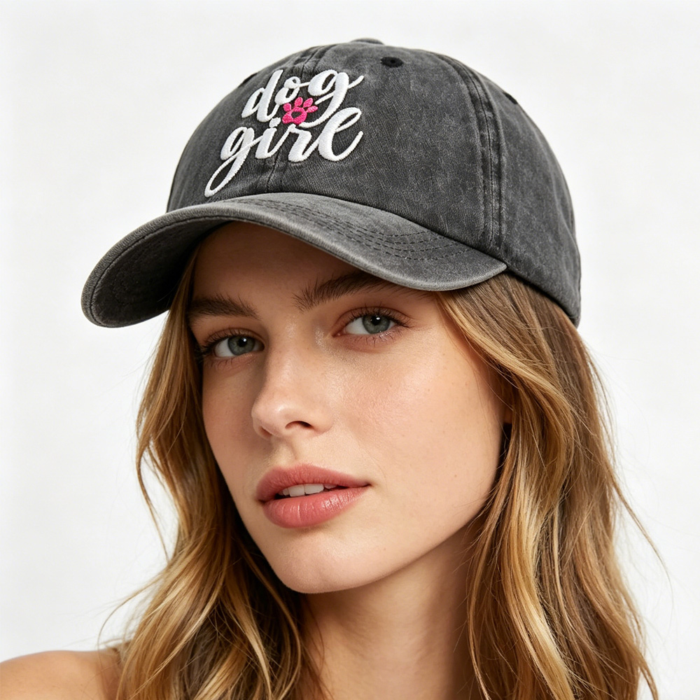 Dog Girl Embroidered Baseball Cap, Washed Cotton Vintage Hat For Dog Lovers is designed for style, comfort, and everyday use.