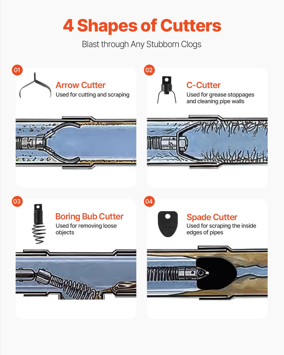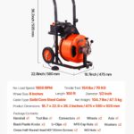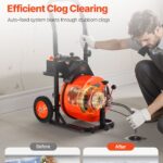 Drain Cleaner Machine 100 FT X 1/2 Inch, Auto Feed Sewer Snake Auger On Wheels, Portable Drain Cleaning Machine With 4 Cutters & Air-activated Foot Switch For 2″ To 6″ Pipes
