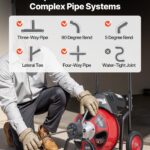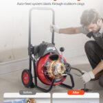 Drain Cleaner Machine 100 FT X 3/8 Inch, Auto Feed Sewer Snake Auger On Wheels, Portable Drain Cleaning Machine With 4 Cutters & Air-activated Foot Switch For 2″ To 4″ Pipes