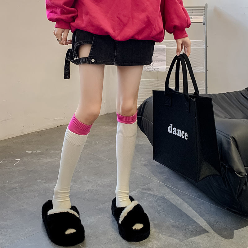 Dual Rib Top Color-blocked Calf Socks For Spring And Autumn, Trendy Ins-style Outerwear Women’s Socks, Popular Korean Street Fashion Slouch Socks is designed for style, comfort, and everyday use.