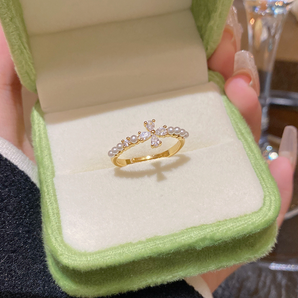 Electroplated Zircon Ring For Women, Niche Design, Adjustable Open Finger Ring