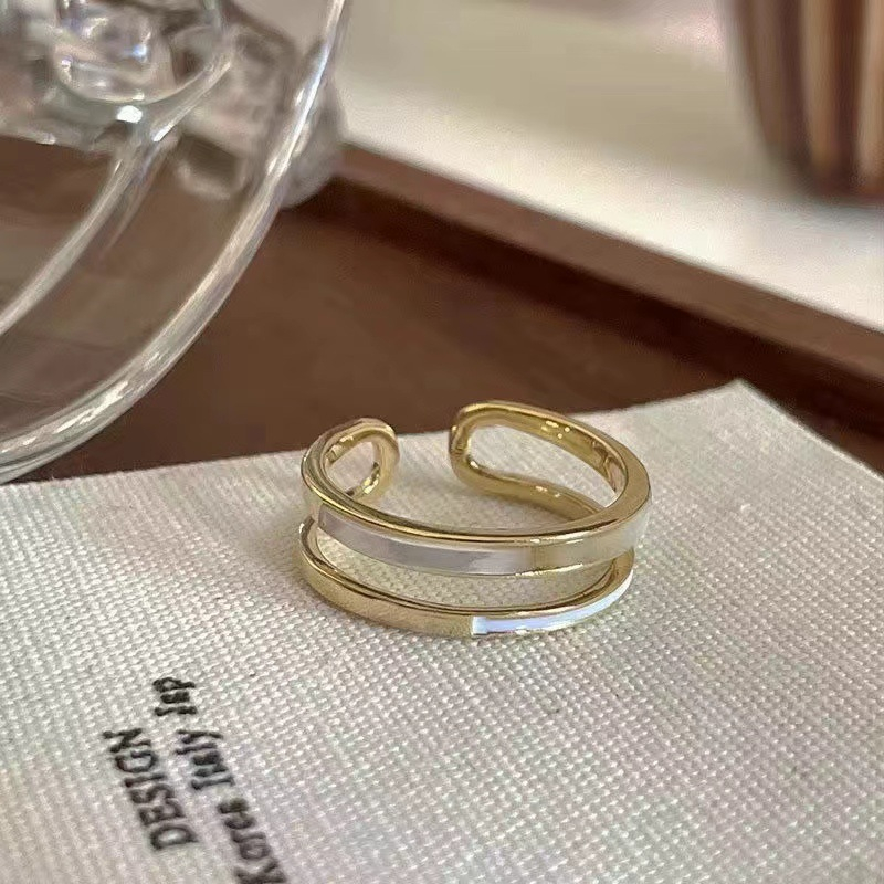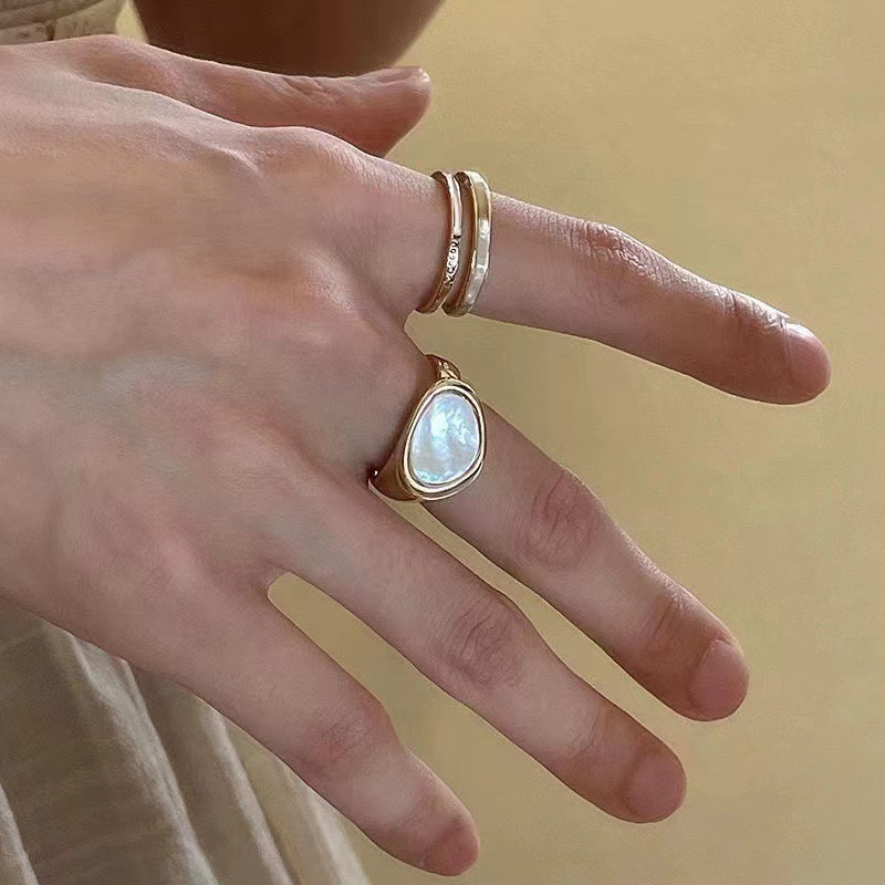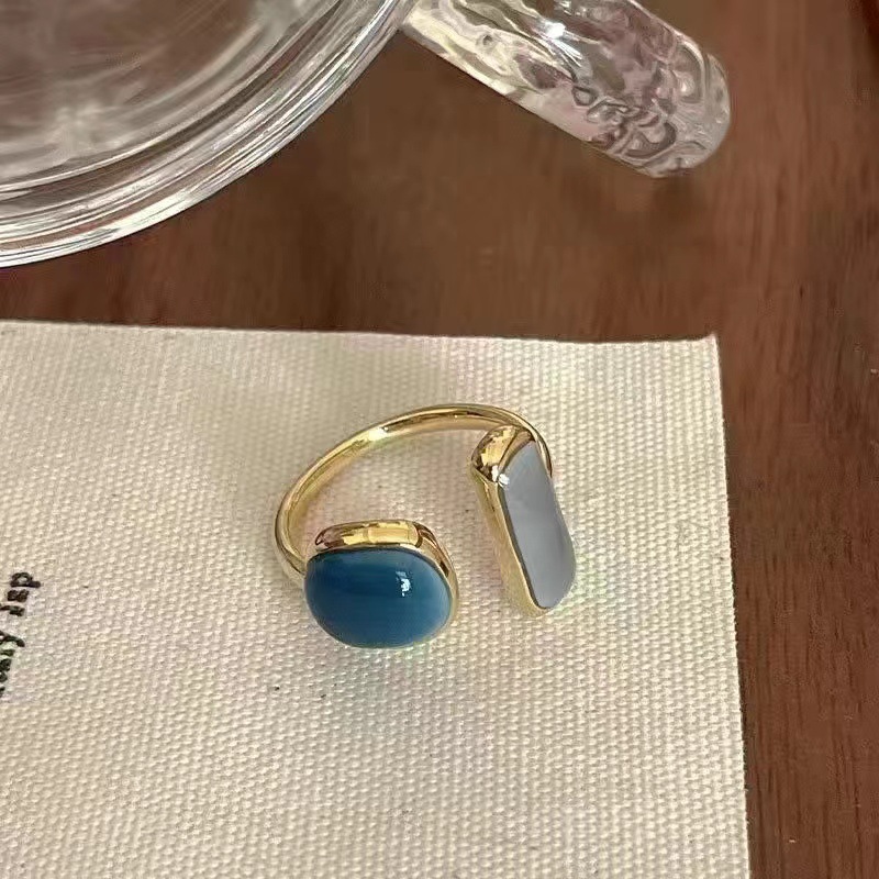 • Blue and white fine-mesh oil-drop ring, shell and zircon ring, patchwork shell ring, green and gray geometric oil-drop ring, irregular-shaped white shell ring, blue and gray geometric oil-drop ring