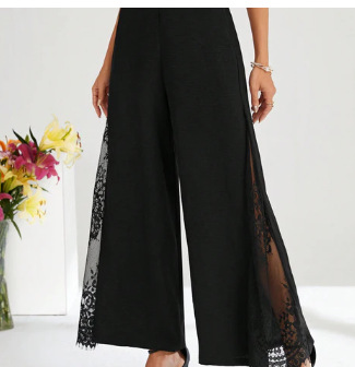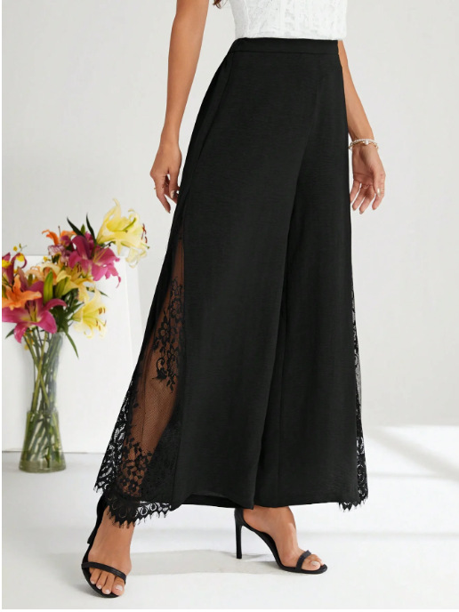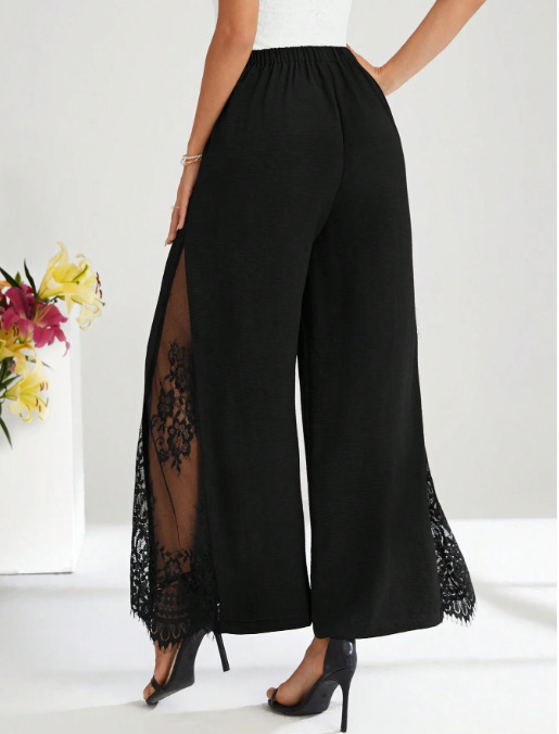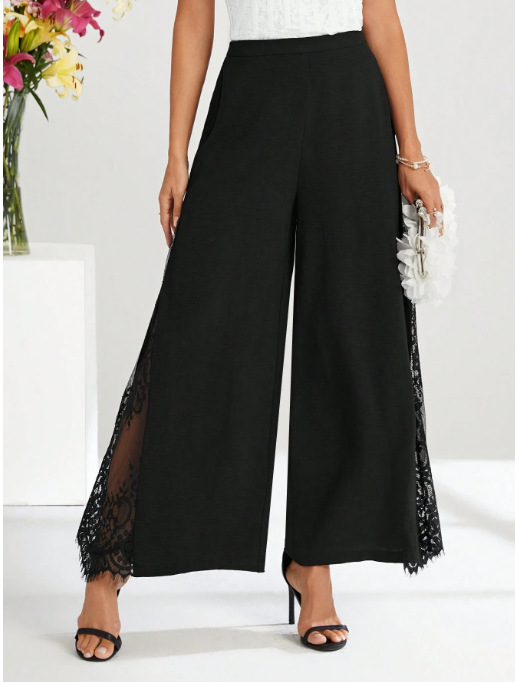 Elegant Lace-panelled High-waisted Casual Chic Wide-leg Pants is designed for style, comfort, and everyday use.