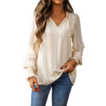 Be the first to review “Elegant Solid-Color V-Neck Drawstring Long-Sleeve Top Shirt”