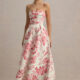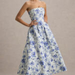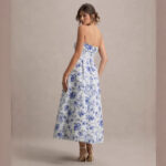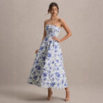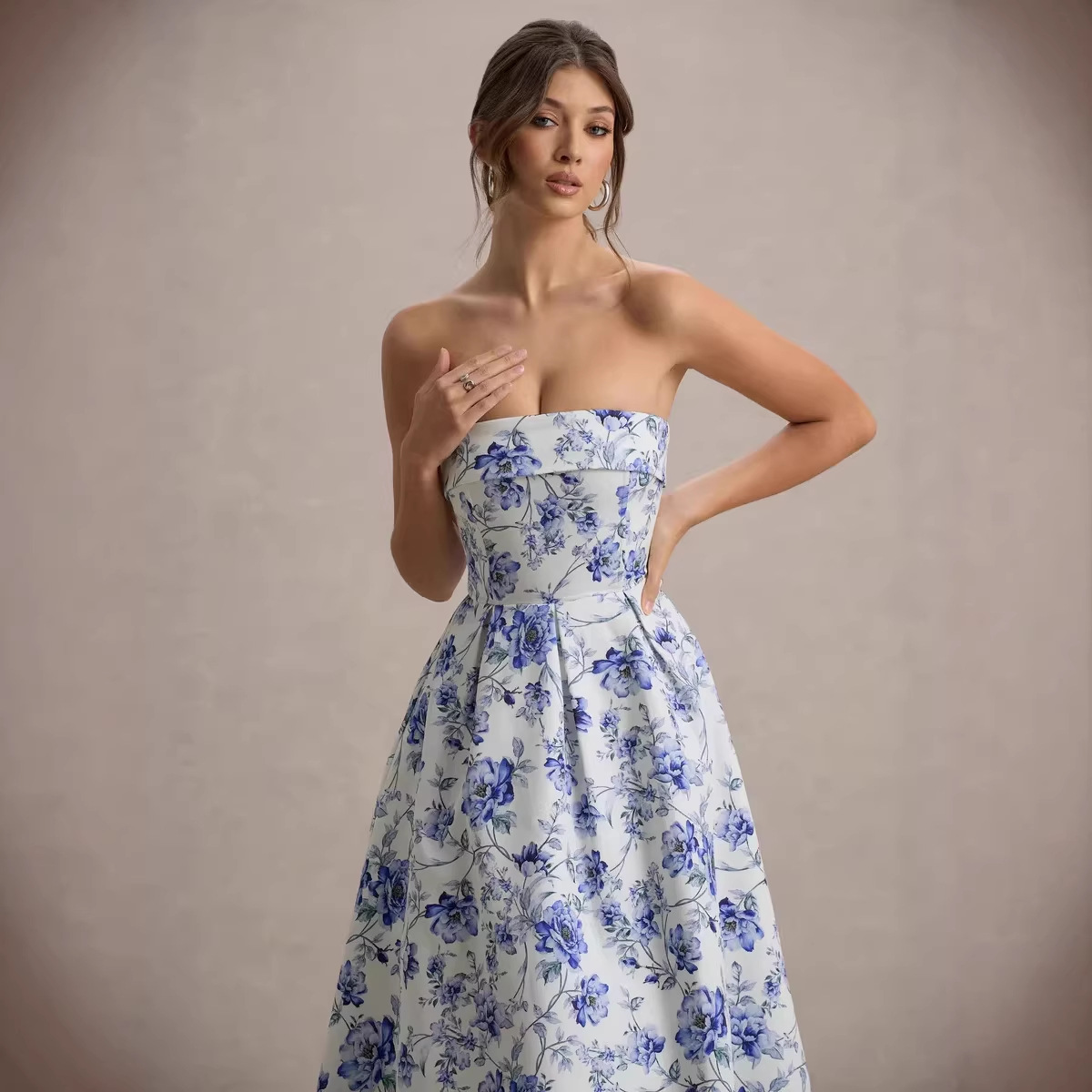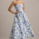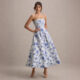 Elegant Strapless Waist-Cinched Off-Shoulder Printed Dress
