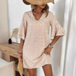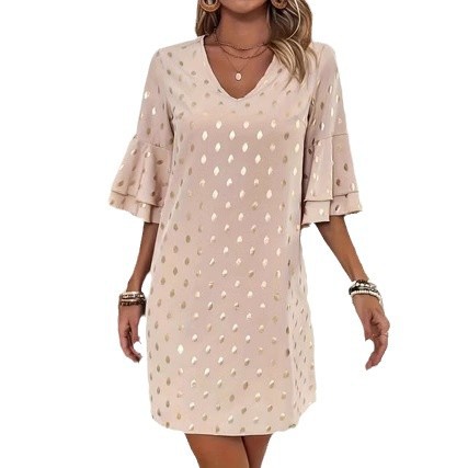 Elegant V-Neck Flared-Sleeve Polka-Dot Gold-Stamped Womens Dress is designed for style, comfort, and everyday wear.
