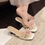 Overview • Elevate your everyday look with these delicate Korean-style floral high heel mules. Featuring a romantic sheer rose decoration, a sleek square toe, and a convenient slip-on design, these open-toe sandals offer both gentle elegance and a subtle leg-lengthening lift. Perfect for matching dresses and adding a soft, sophisticated charm to spring, summer outings, or casual daily wear. • Product Information