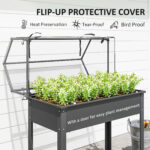 Elevated Garden Box with Greenhouse Cover, Raised Garden Bed with Legs and Drainage Hole for Vegetables, Dark Gray