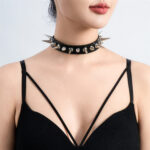 Euro-American Harajuku Punk PU Leather Spiked Choker Necklace