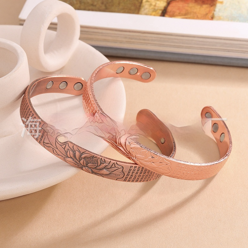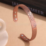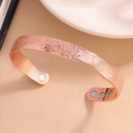 Euro-American Retro Rose Gold Open-End Embossed Design Magnetic Health Bracelet