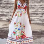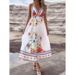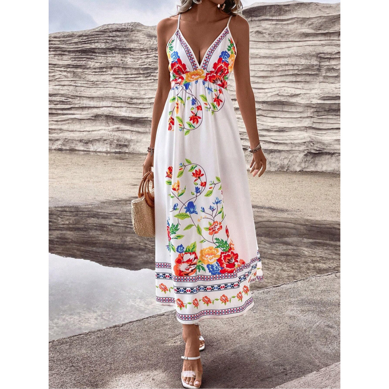 European And American Floral Print V-Neck Slip Dress