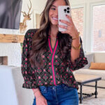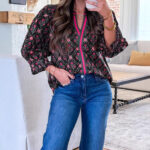 European And American-style Fashion Contrast-color Floral-print Chiffon Blouse