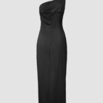 European And American-style Solid-color One-shoulder Pleated Slit Dress