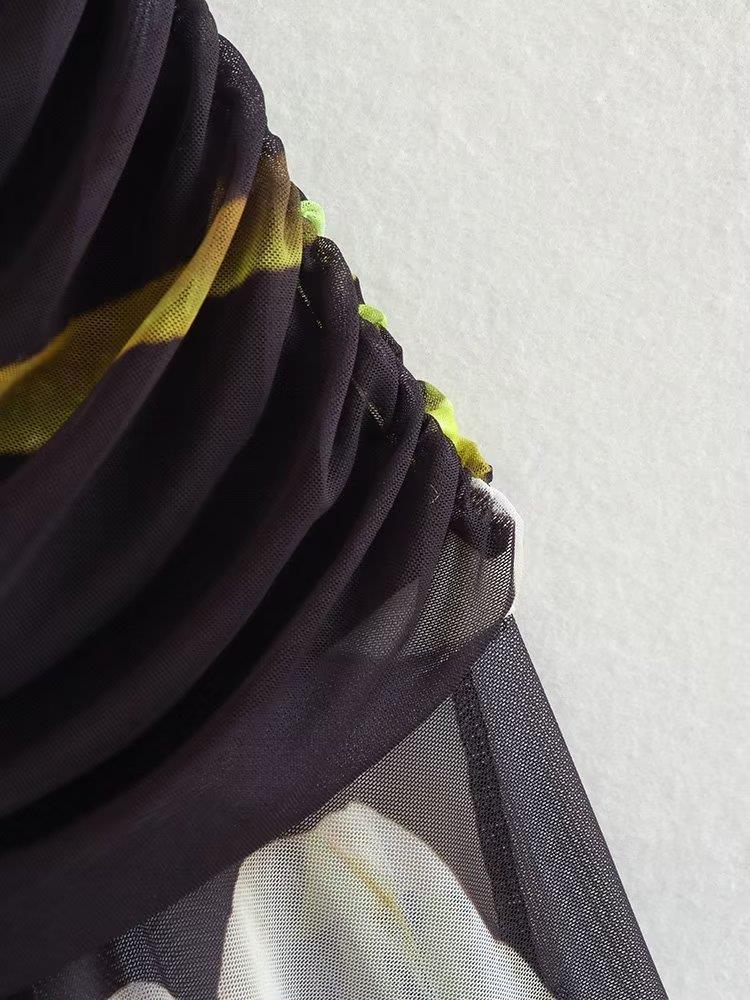 European And American Style Summer Womens New Silk Mesh Printed Tube Dress