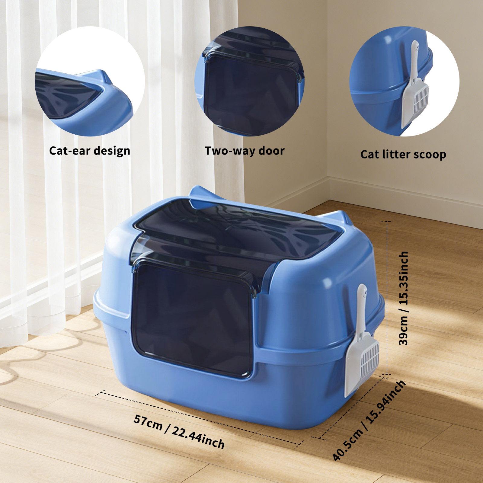 Extra Large Cat Ear Fully Enclosed Cat Litter Box, With Free Scoop & Litter Mat, Anti-Splash & Anti-Tracking Odor Locking, For Large Cats & Multi-Cat Households