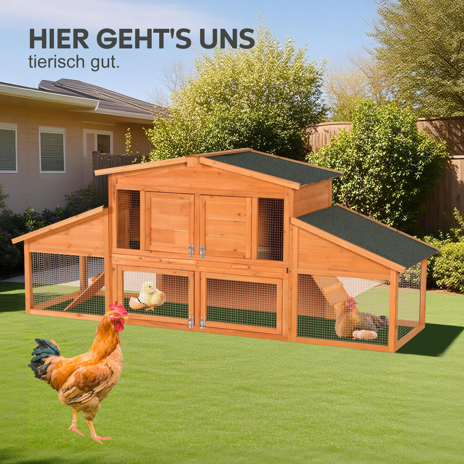 Extra-large Wooden Rabbit House, Chicken Coop, Outdoor Unit That Can Be Easily Assembled And Stable, Indoor With Cleaning Tray And Waterproof Roof, Suitable For Small And Medium-sized Rabbits And Chic