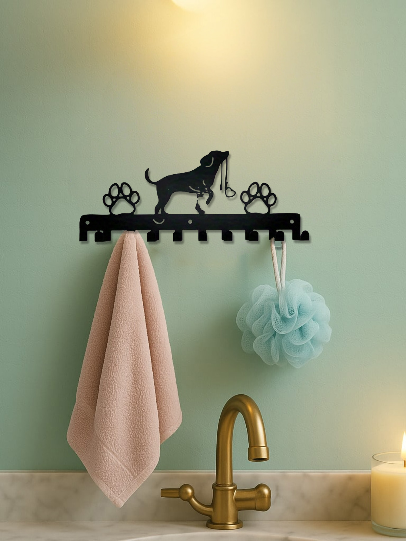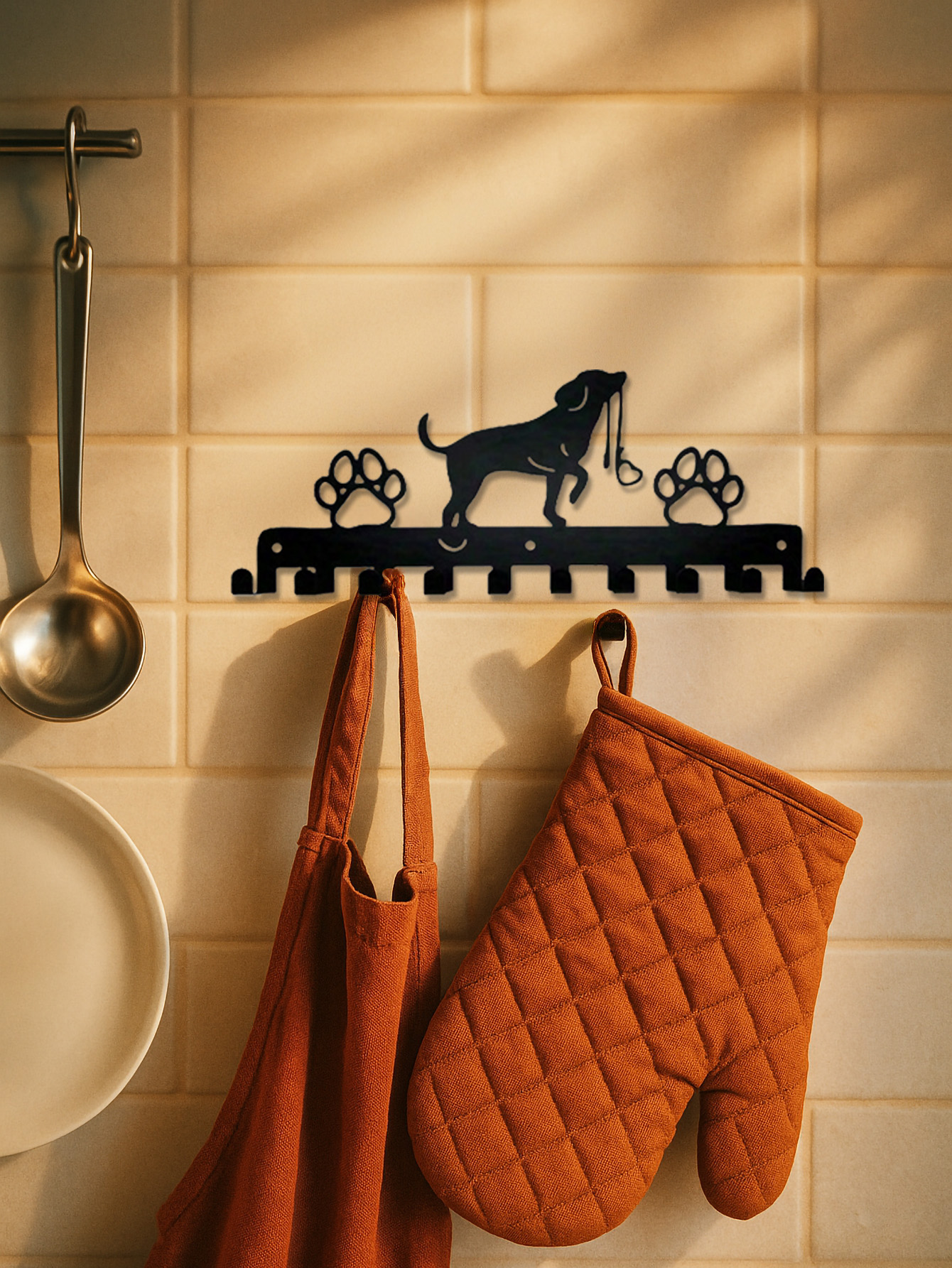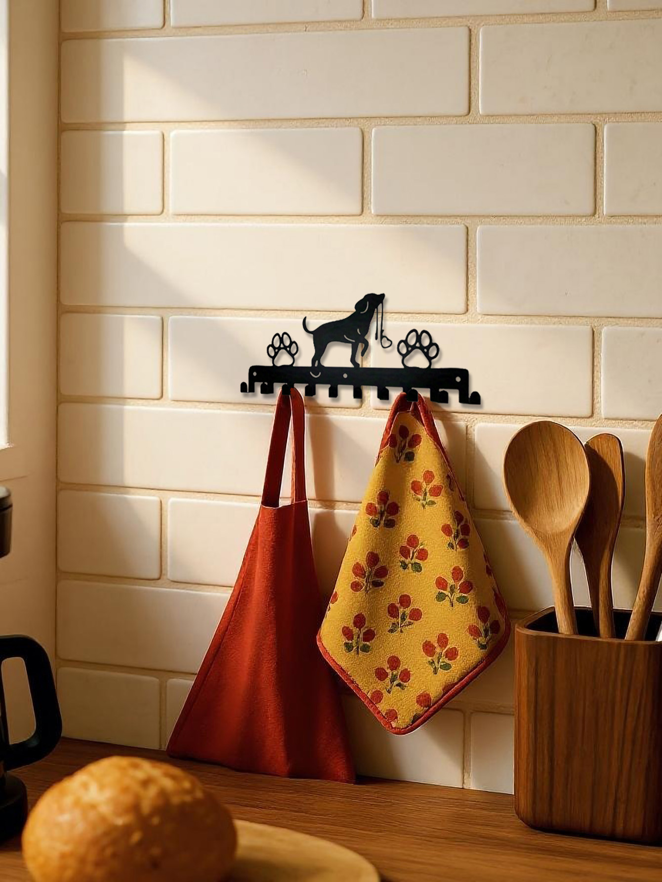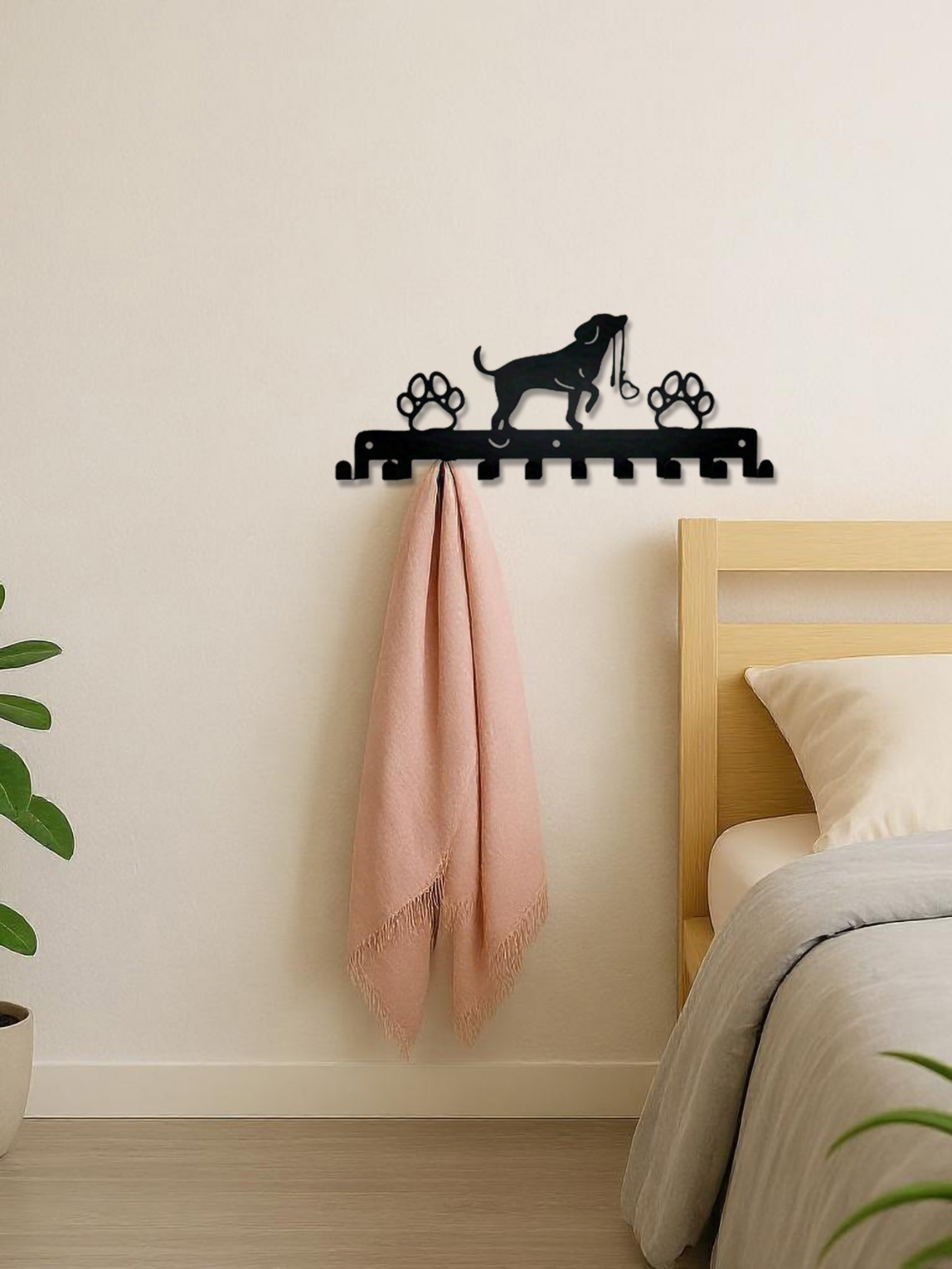 Farmhouse Style Dog Hooks Wall Decor – Rustic Wooden Coat Rack & Key Holder