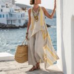 Fashionable Casual Dopamine Holiday-Style Petite Linen Two-Piece Set