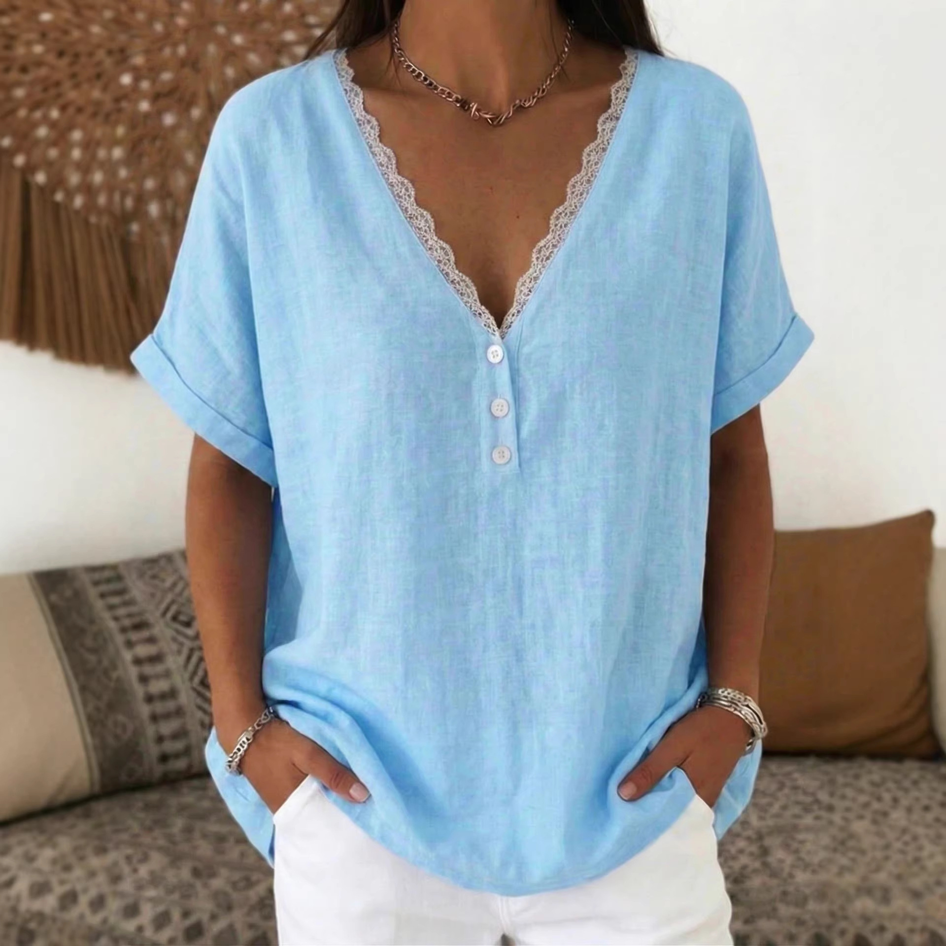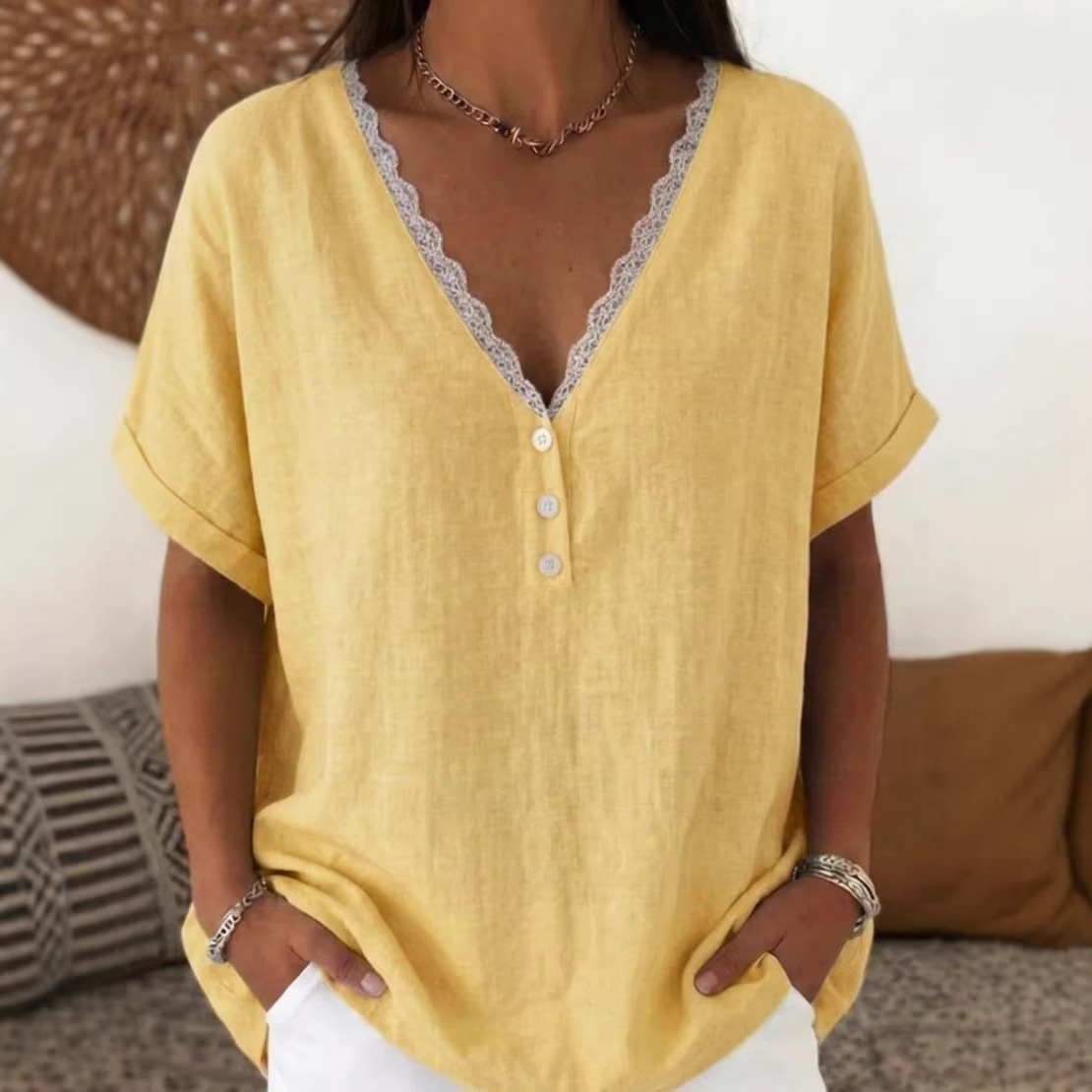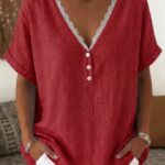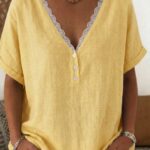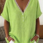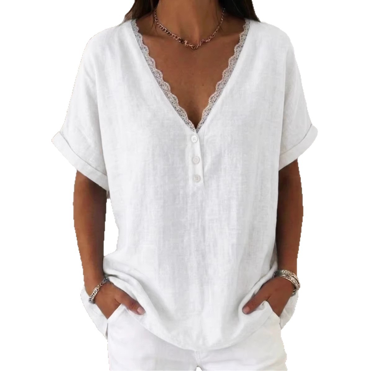 Fashionable Casual Solid-color Lace-trimmed Collar Short Sleeves is designed for style, comfort, and everyday use.