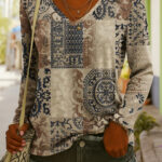 Be the first to review “Fashionable Ethnic-Style Printed V-Neck Long-Sleeve T-Shirt”