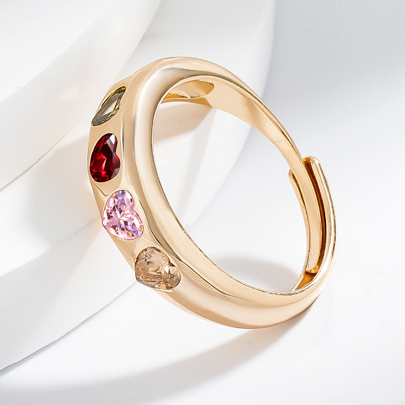 Fashionable Heart-Shaped Zircon Copper-Inlaid Ring