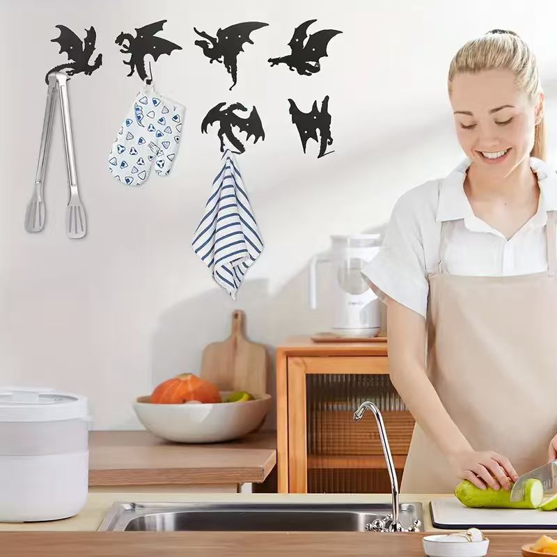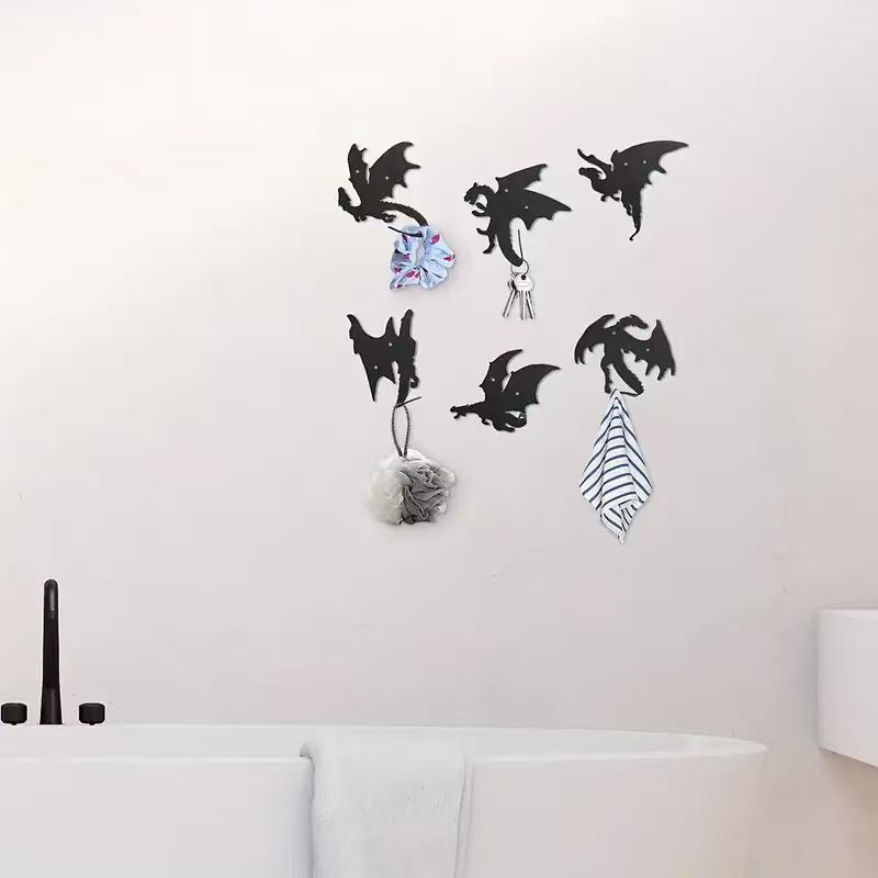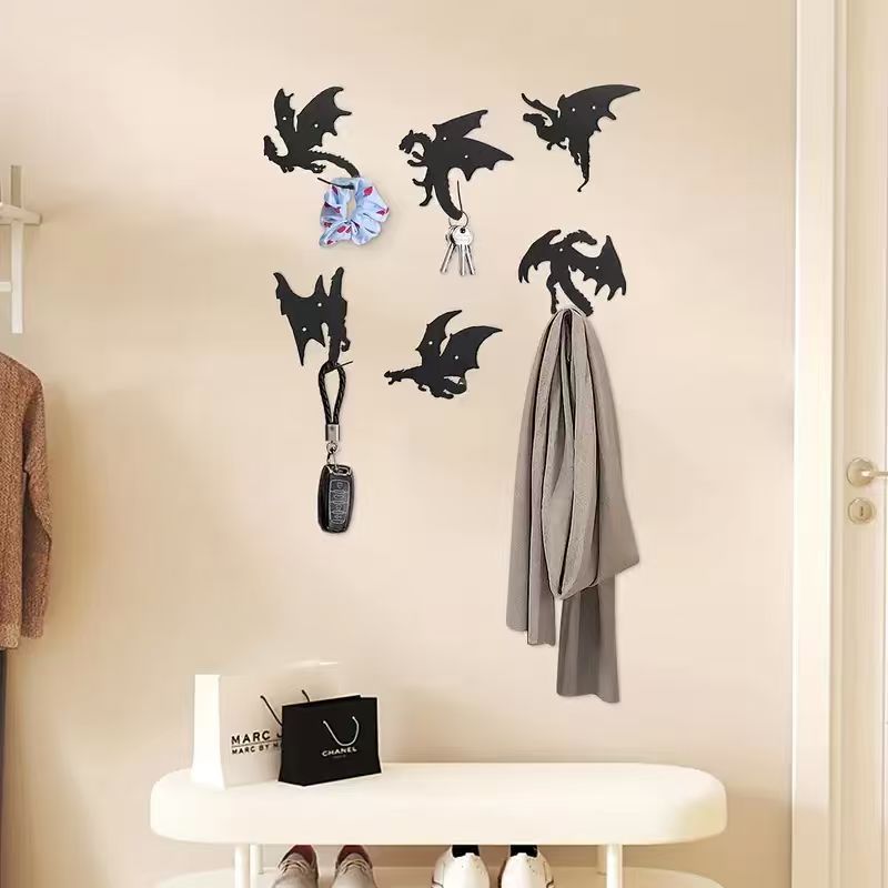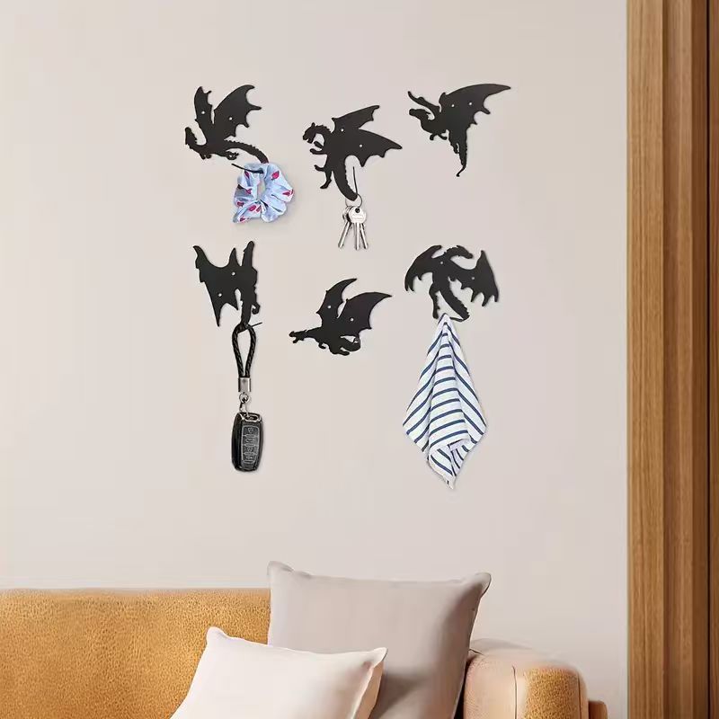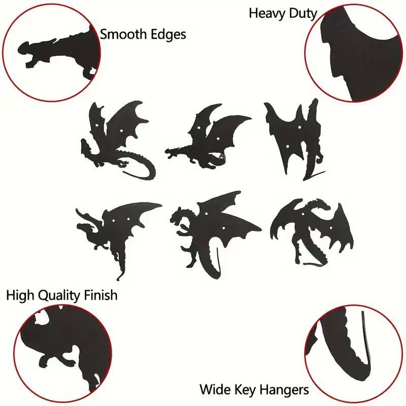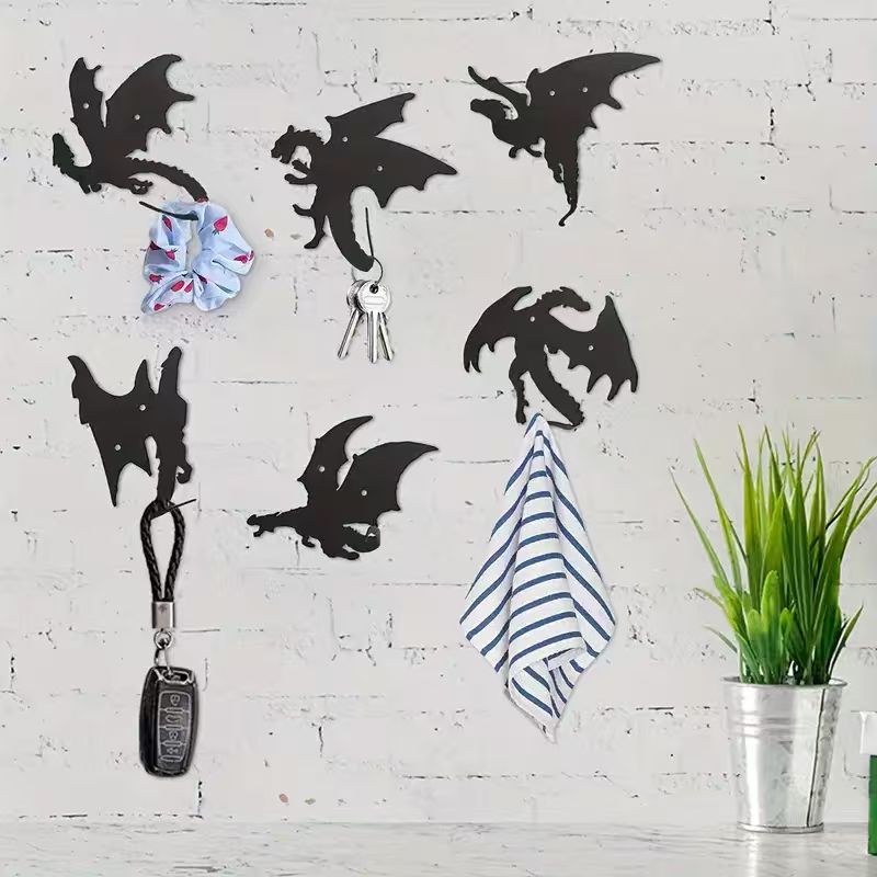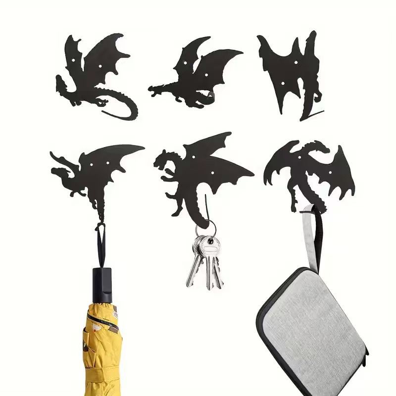 This metal dragon-shaped key hook combines modern minimalist style with creative design, suitable for entryways, hallways, or home offices, offering both decorative appeal and practical functionality. • Modern Minimalist • 6 x Flying Dragon Hook