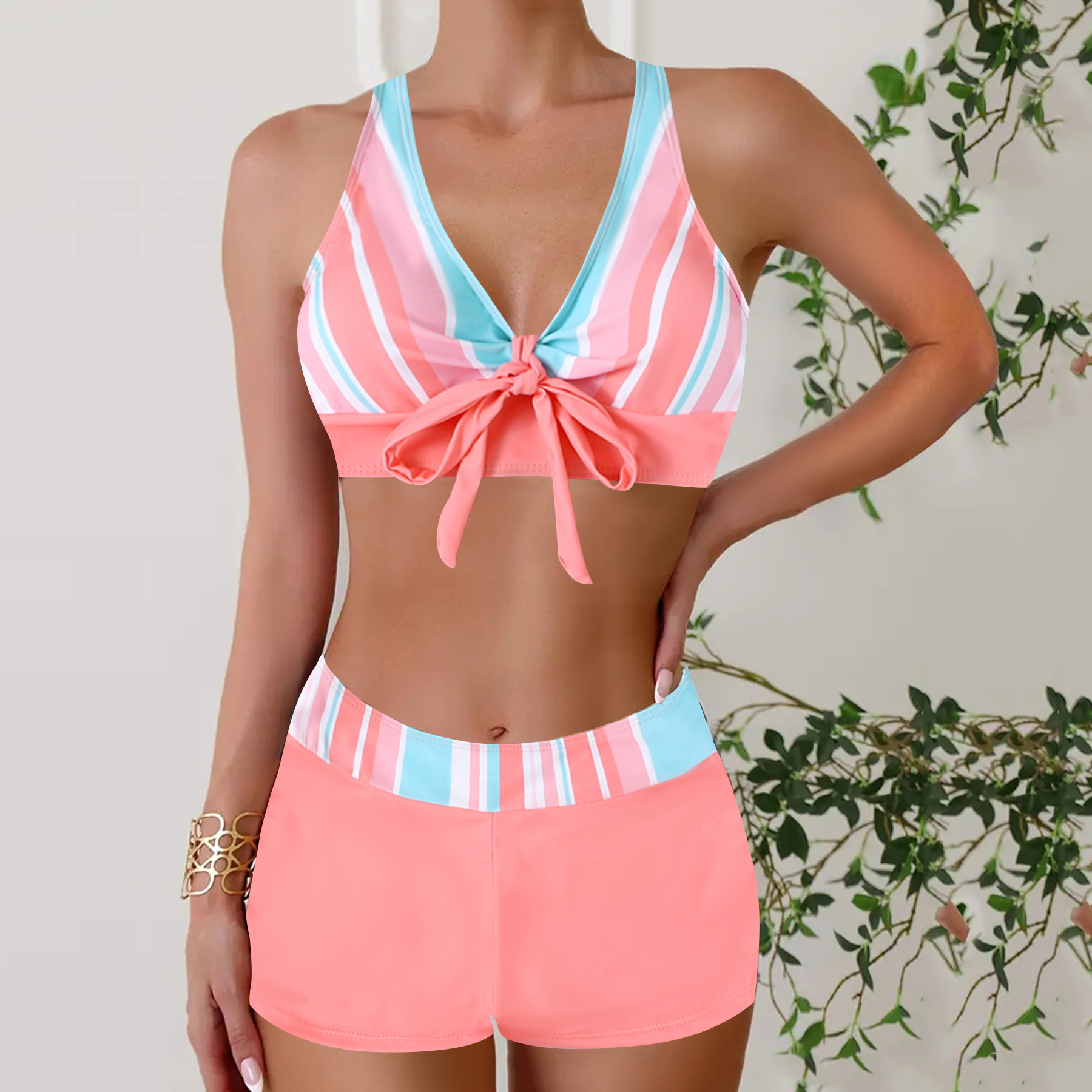 Fashionable Women’s Two-Piece Boxer Swimsuit