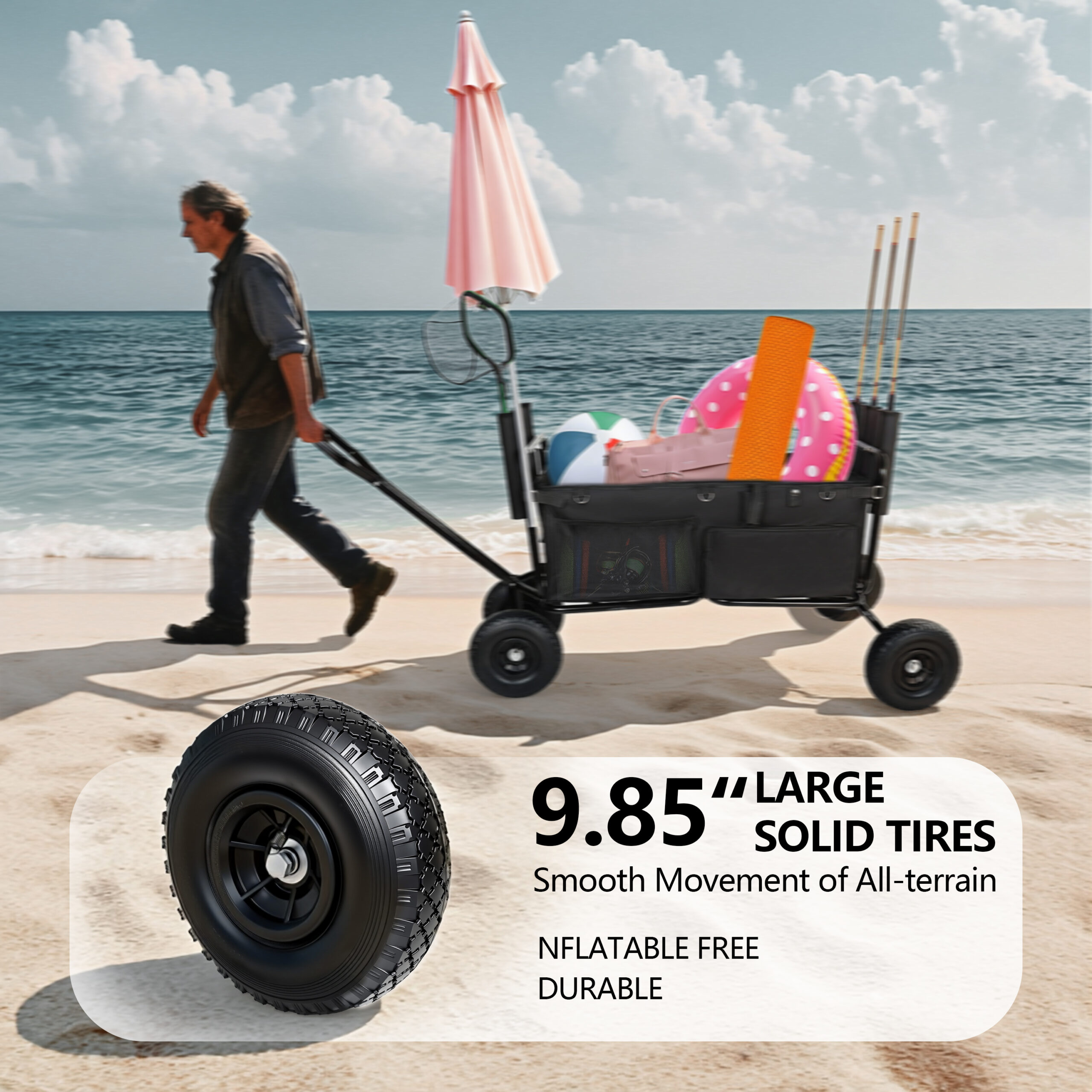 Fishing Cart Beach Cart Collapsible Wagon 9.85 All- Terrain Wheels For Sand Heavy Duty Garden Cart With Rod Holders Umbrella Holder And Storage Pockets 550lb Large Capacity Black is designed for style, comfort, and everyday use.