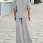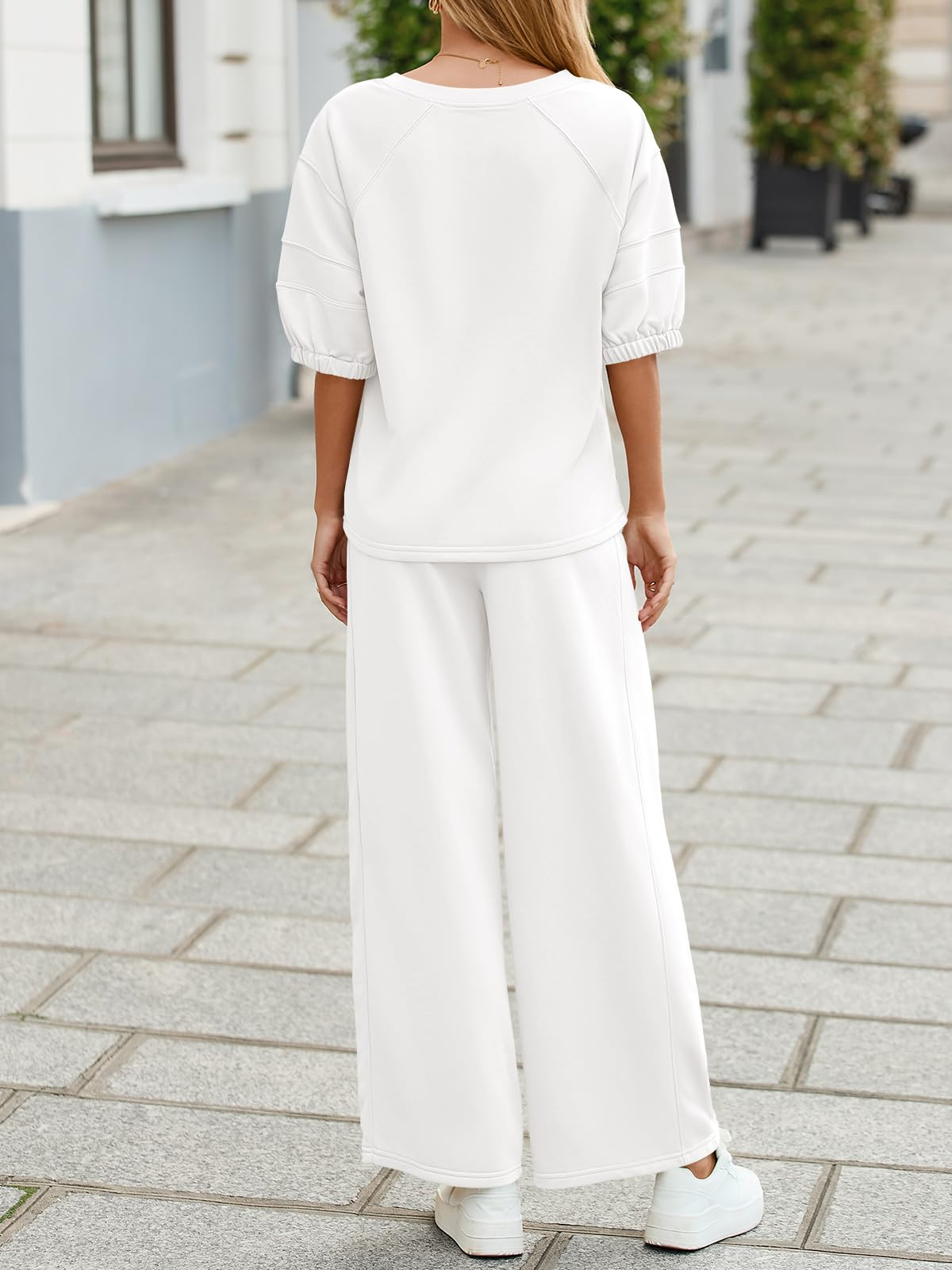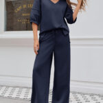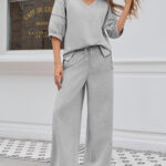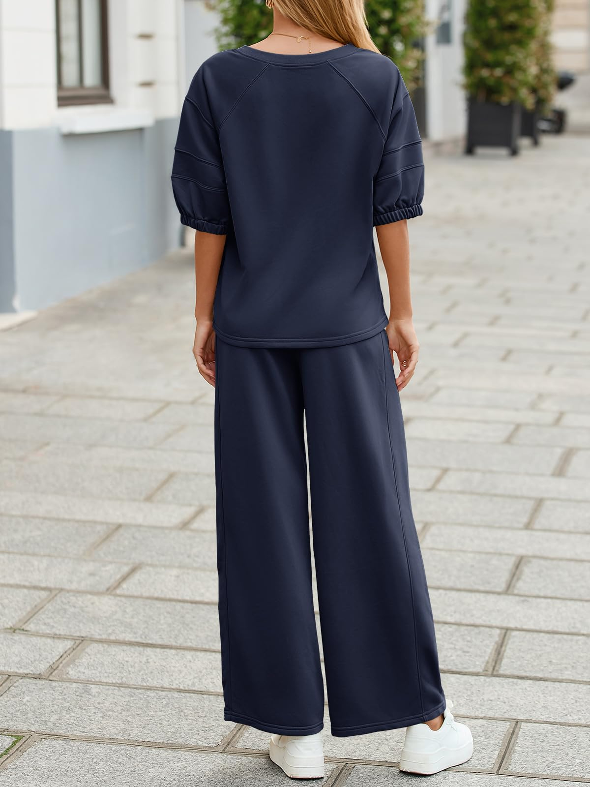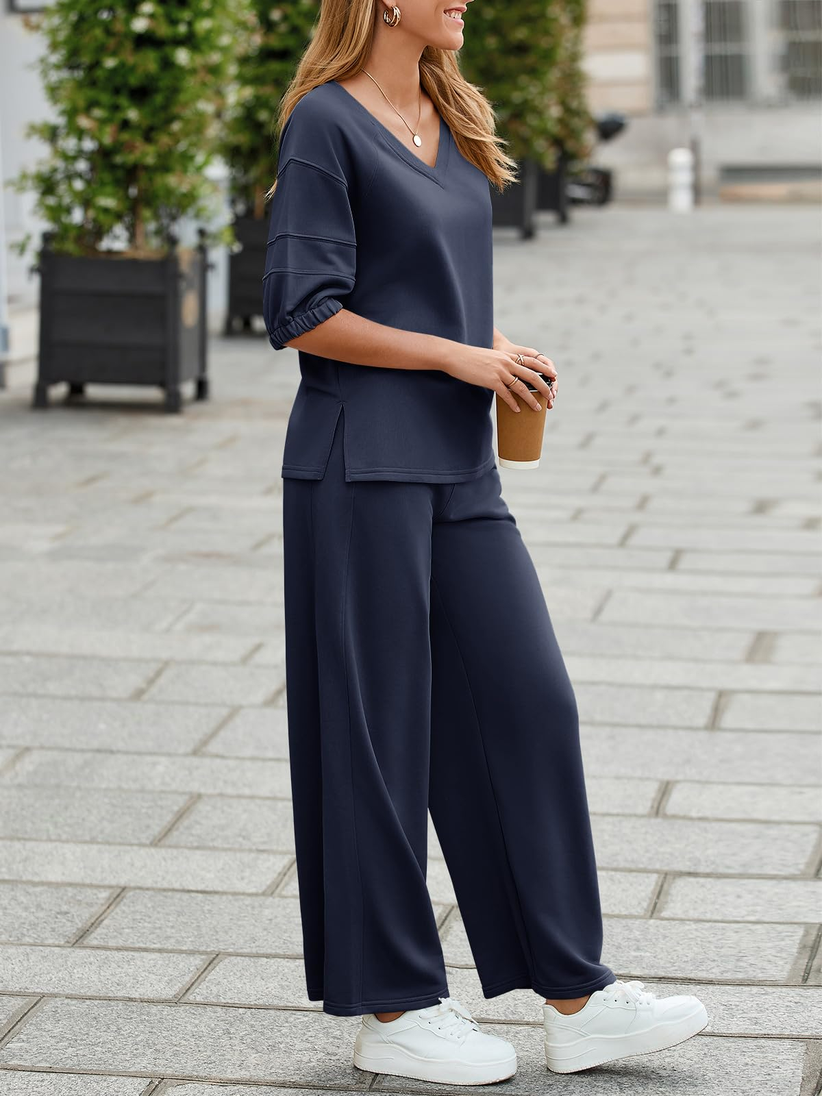 Fisoew Womens 2 Piece Outfits Casual V Neck Shirts Wide Leg Running Long Pants Loose Workout Tracksuit Sets is designed for style, comfort, and everyday use.