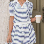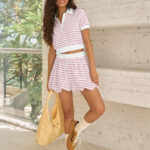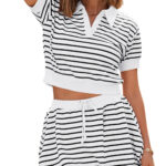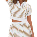 Be the first to review “Fisoew Womens Striped 2 Piece Outfits Skort Set Short Sleeves Shirts Bubble Mini Skirt Sets Matching Sets”