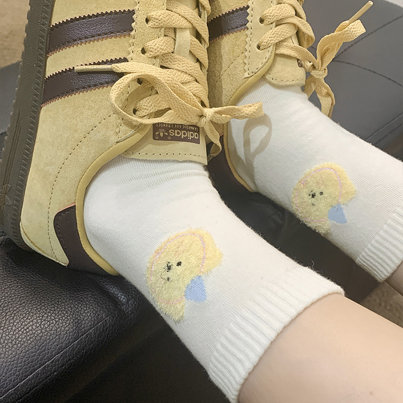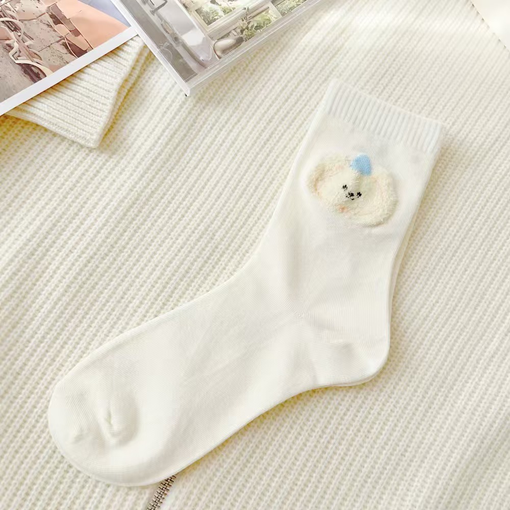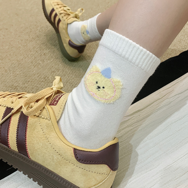 Flocked Cute INS-style Bear Head Cartoon Mid-calf Socks, All-season Style For Girls, Soft, Sweat-absorbent, Versatile Cotton Socks For Wholesale is designed for style, comfort, and everyday use.