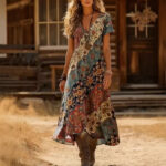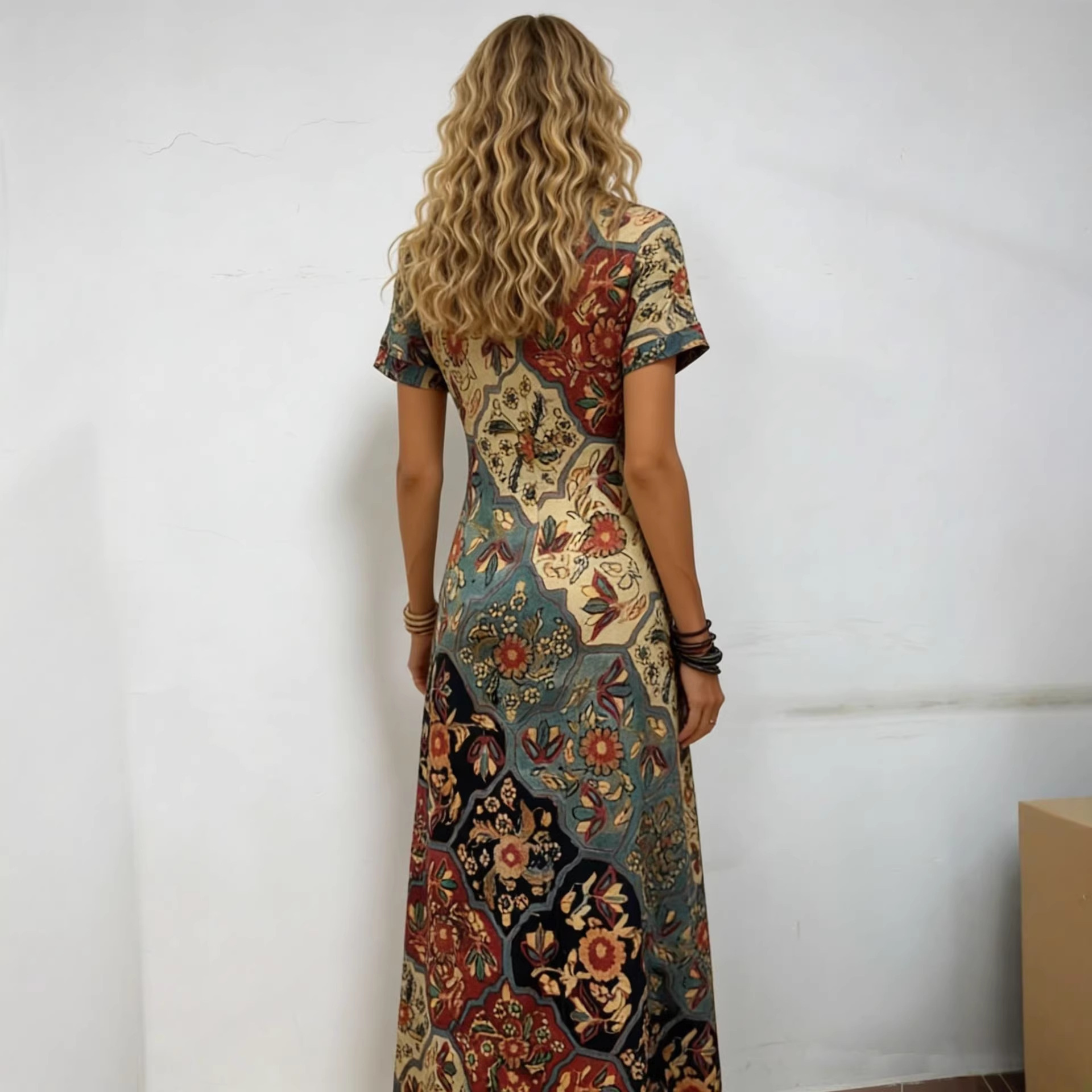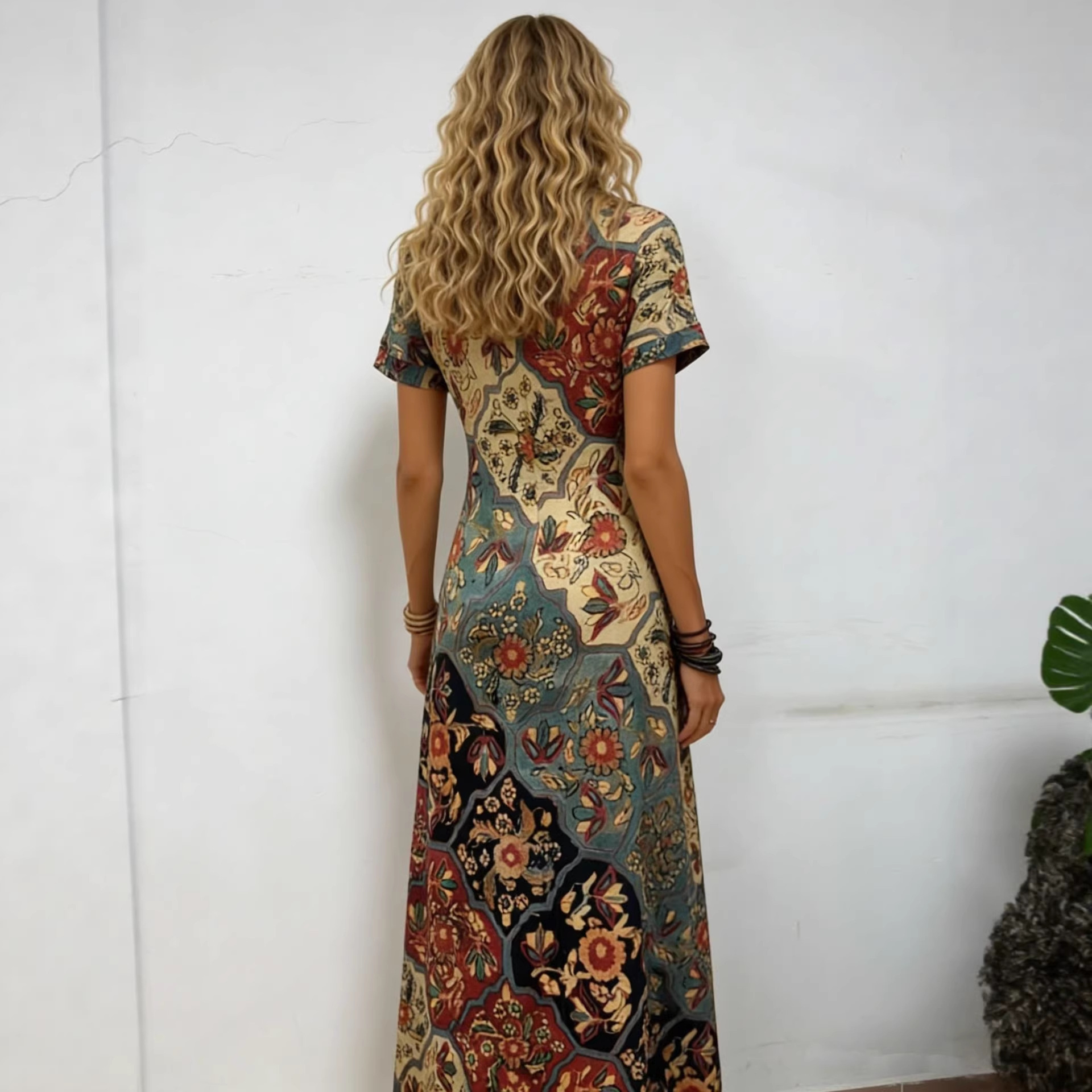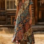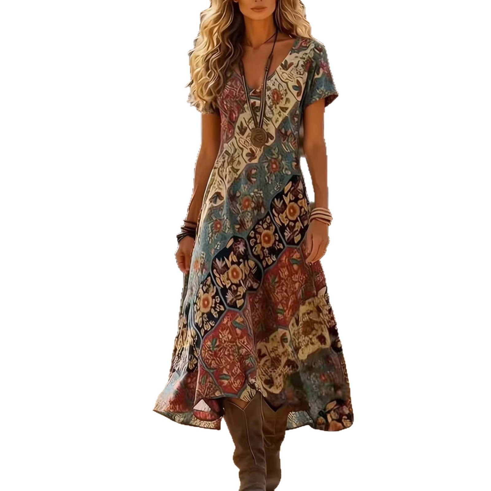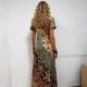 Floral Digital Print Art Short-Sleeve Elegant Dress