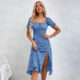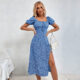 Floral Print Dress Summer Sweet Youth-Enhancing Square-Neck Long Dress