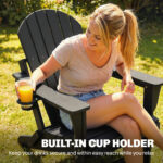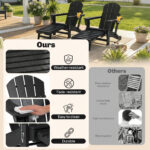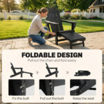 Folding Adirondack Chair Set of 2, HDPE Fire Pit Chair with Retractable Ottoman and Cup Holder, Black