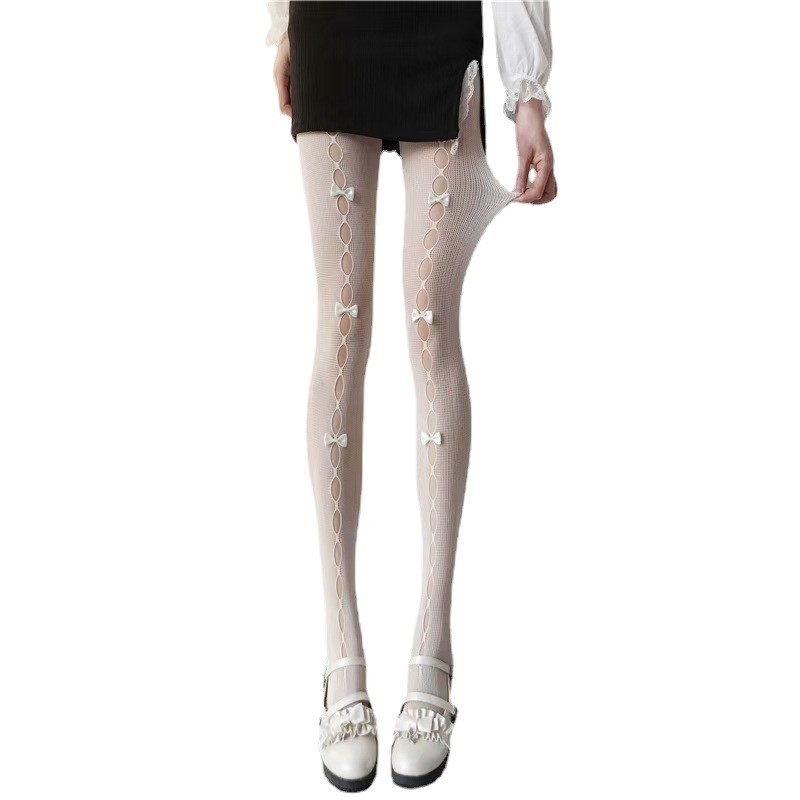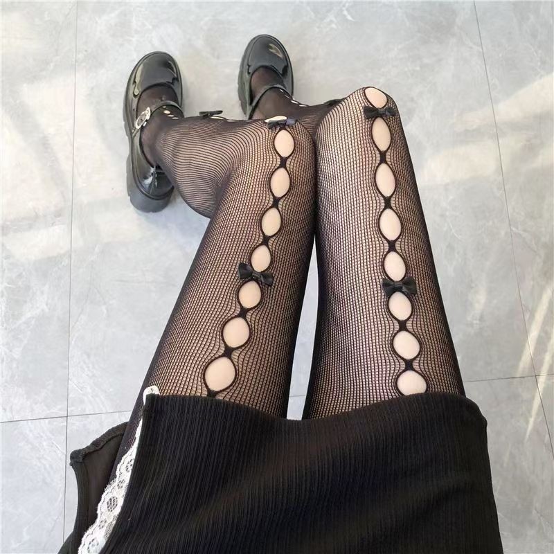 French Lace Fishing Net Socks, Bow Tie, Female Sexy Hollow Hole Mesh Socks, Versatile Mesh Pants