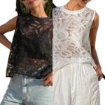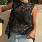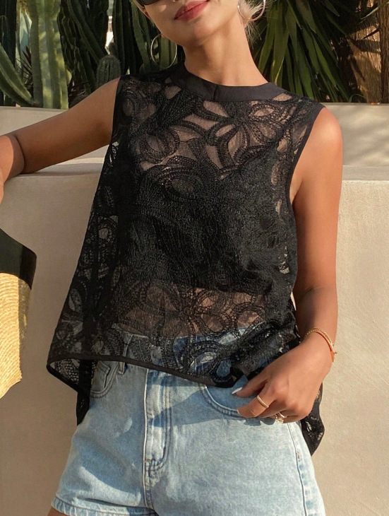 French Lace Vest Round Neck Womens Top