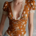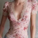 Be the first to review “French Retro Style Lace Patchwork Printed Puff Sleeve Top For Women”