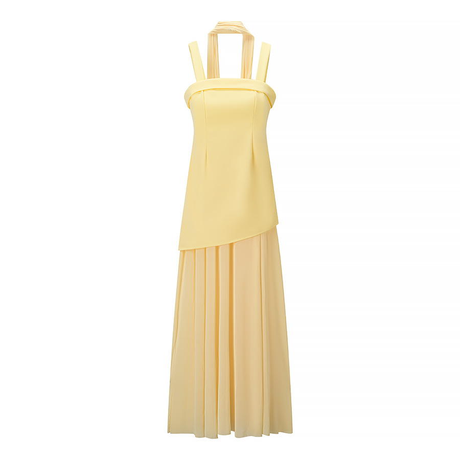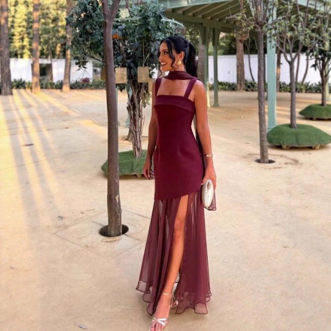 French Romantic Resort-Style Sexy Backless Flowy Strap Detail High-Slit Maxi Dress