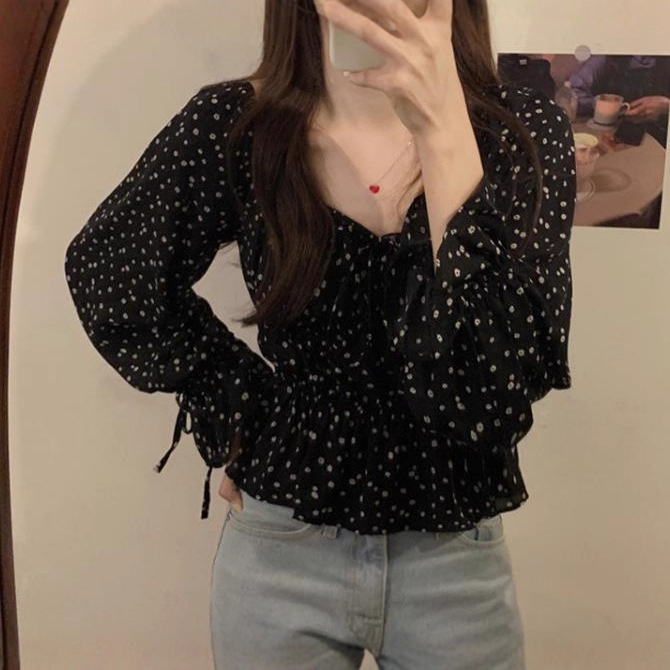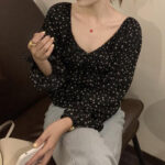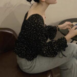 Be the first to review “French-style Off-shoulder Square-neck Puffed-sleeve Black Floral Chiffon Blouse”