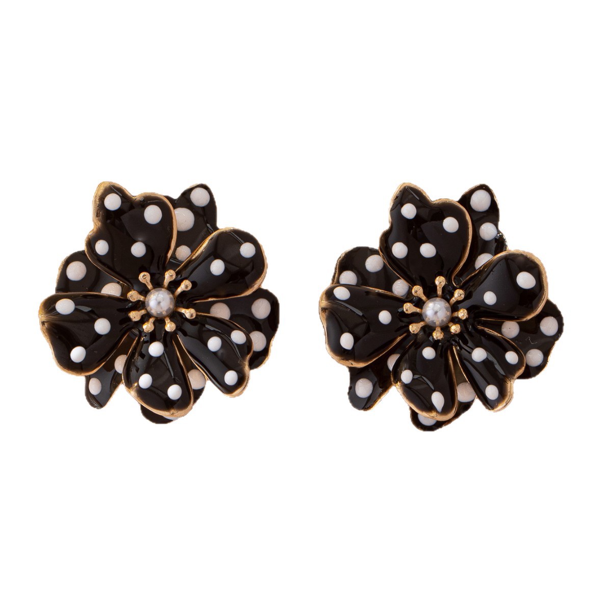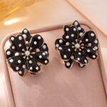 French-style Retro Black And White Polka-Dot Flower Earrings
