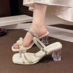 French Style Rough Heel Rhinestone Sandals, Fairy Style Versatile Set Toe Sandals is designed for style, comfort, and everyday use.