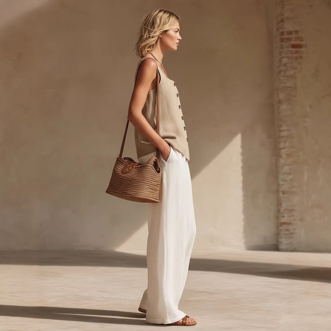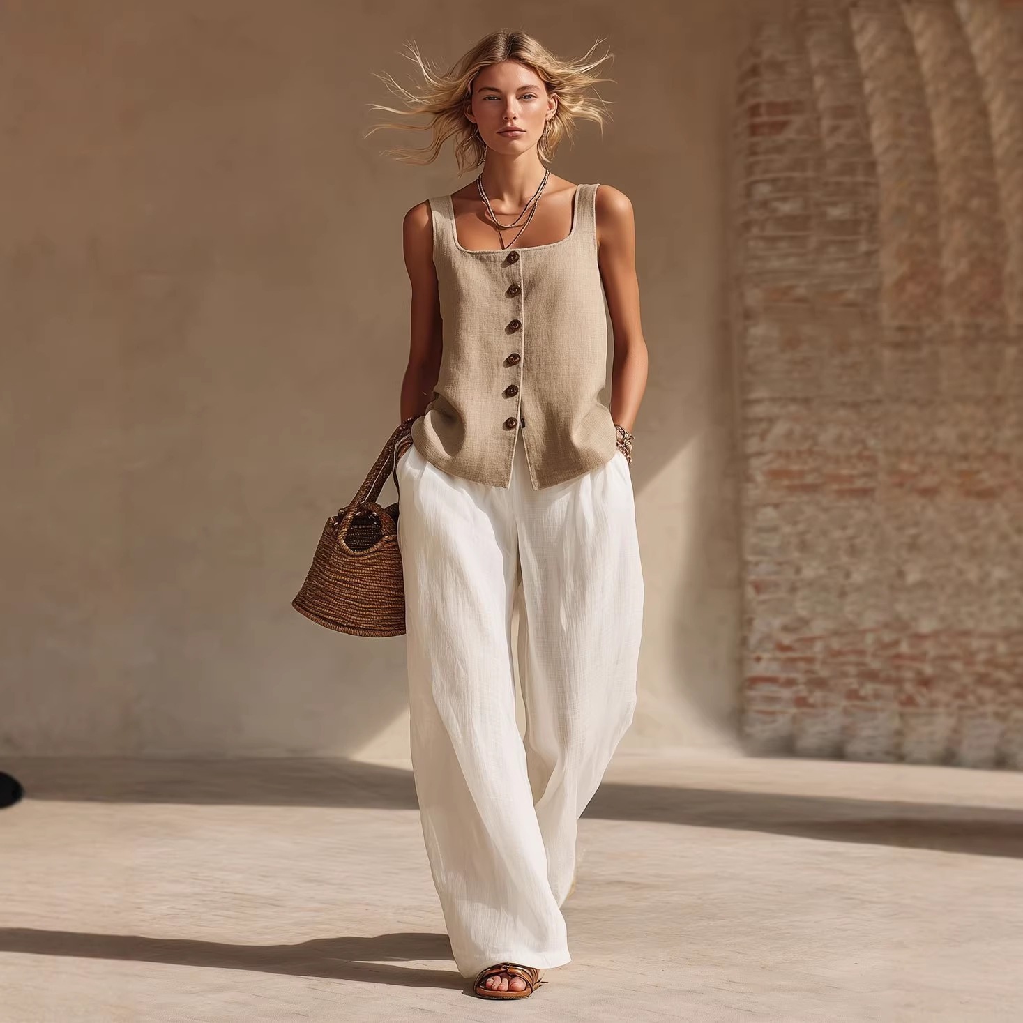 Front-button Cardigan Top And Pants Set is designed for style, comfort, and everyday use.