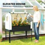 Galvanised Raised Garden Bed with Greenhouse Cover, Metal Elevated Garden Bed with Bed Liner, Bottom Shelf, Black