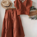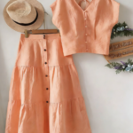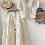 Be the first to review “Gentle Style V-neck Button-down Sleeveless Top And High-waisted Skirt Set For Women”