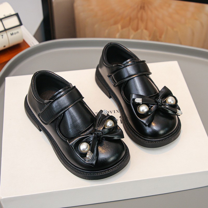 Girls’ Leather Shoes, Black Performance Single Shoes, Baby Girls’ Bow Princess Shoes, Bean Shoes is designed for style, comfort, and everyday use.