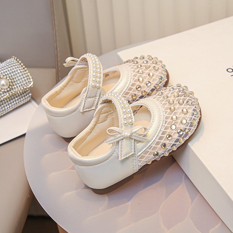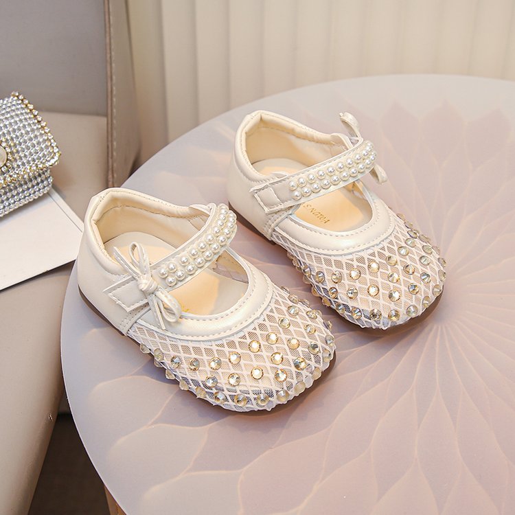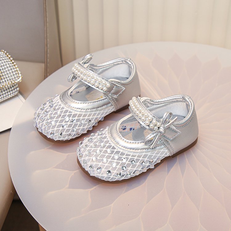 Girls’ Rhinestone Sandals, Soft Soled Princess Shoes, Children’s Pearl Hollow Single Shoes, Trendy
